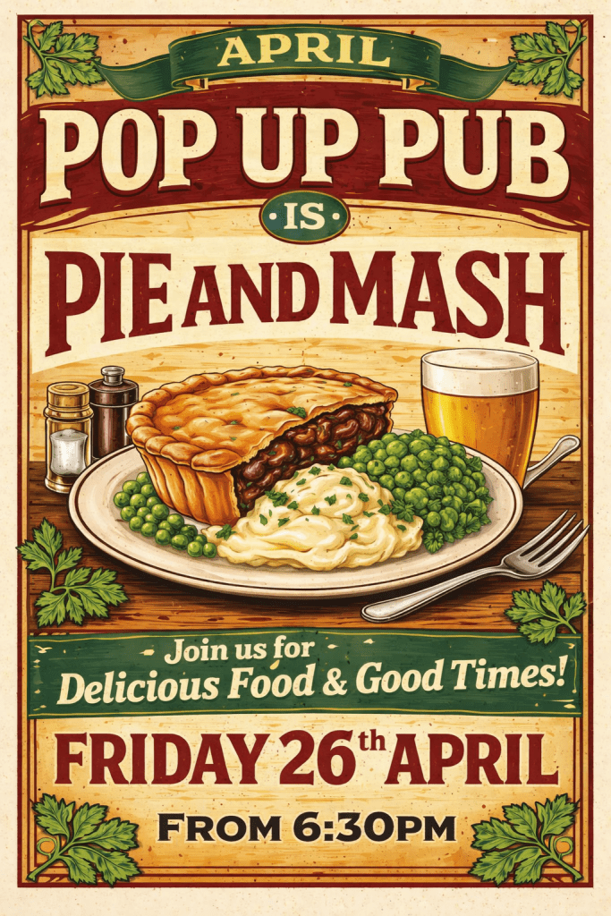 Come along for another great food night at your local Pop up Pub open from 6.30 until 10.30.