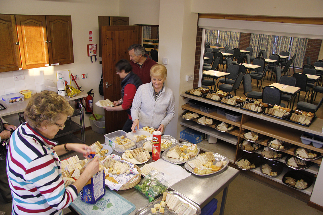 The kitchen can be used for reheating and serving food and drinks – it is not sophisticated enough to be used for preparation and cooking for large numbers.